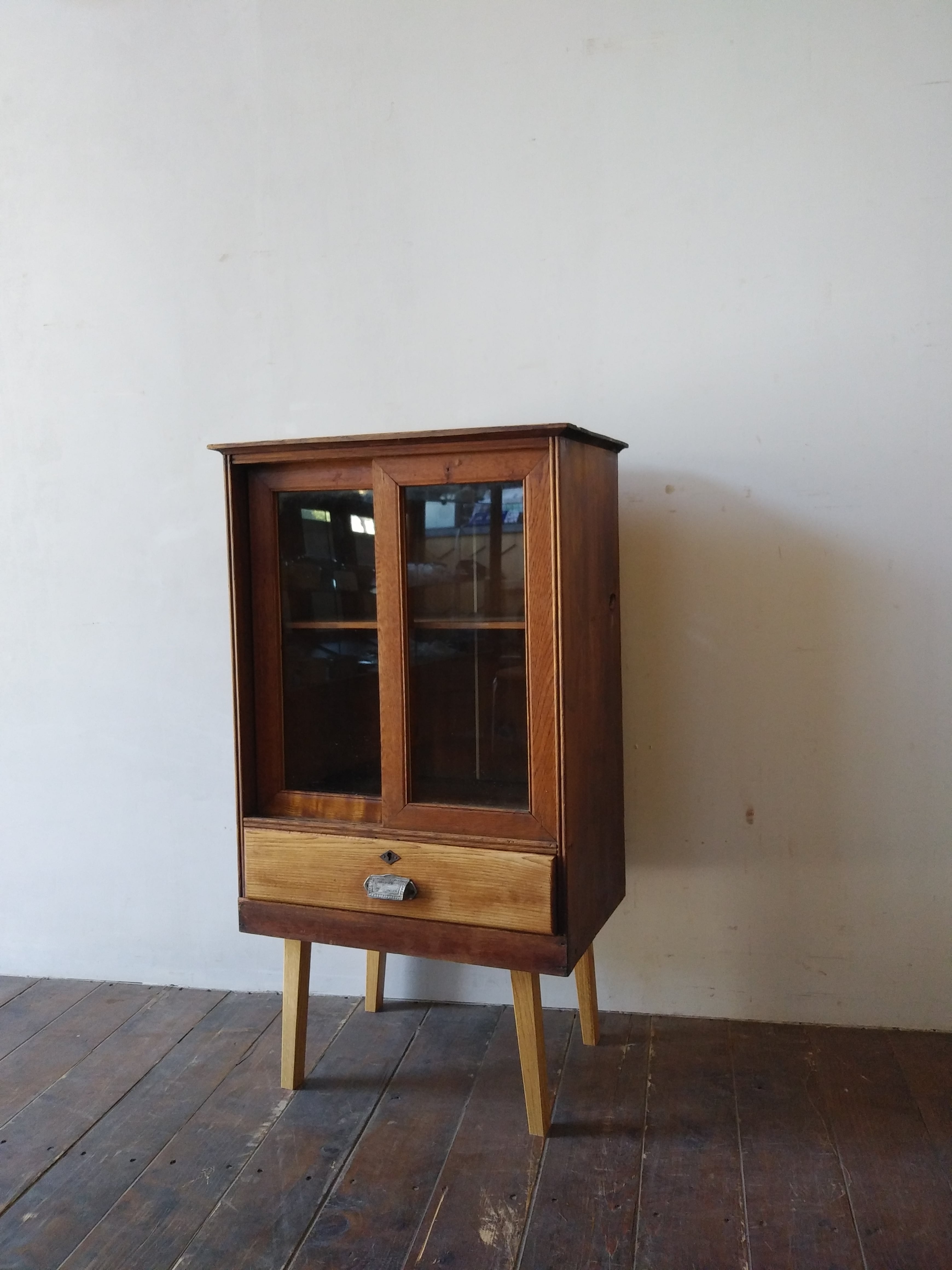 縦型脚付ガラス戸棚