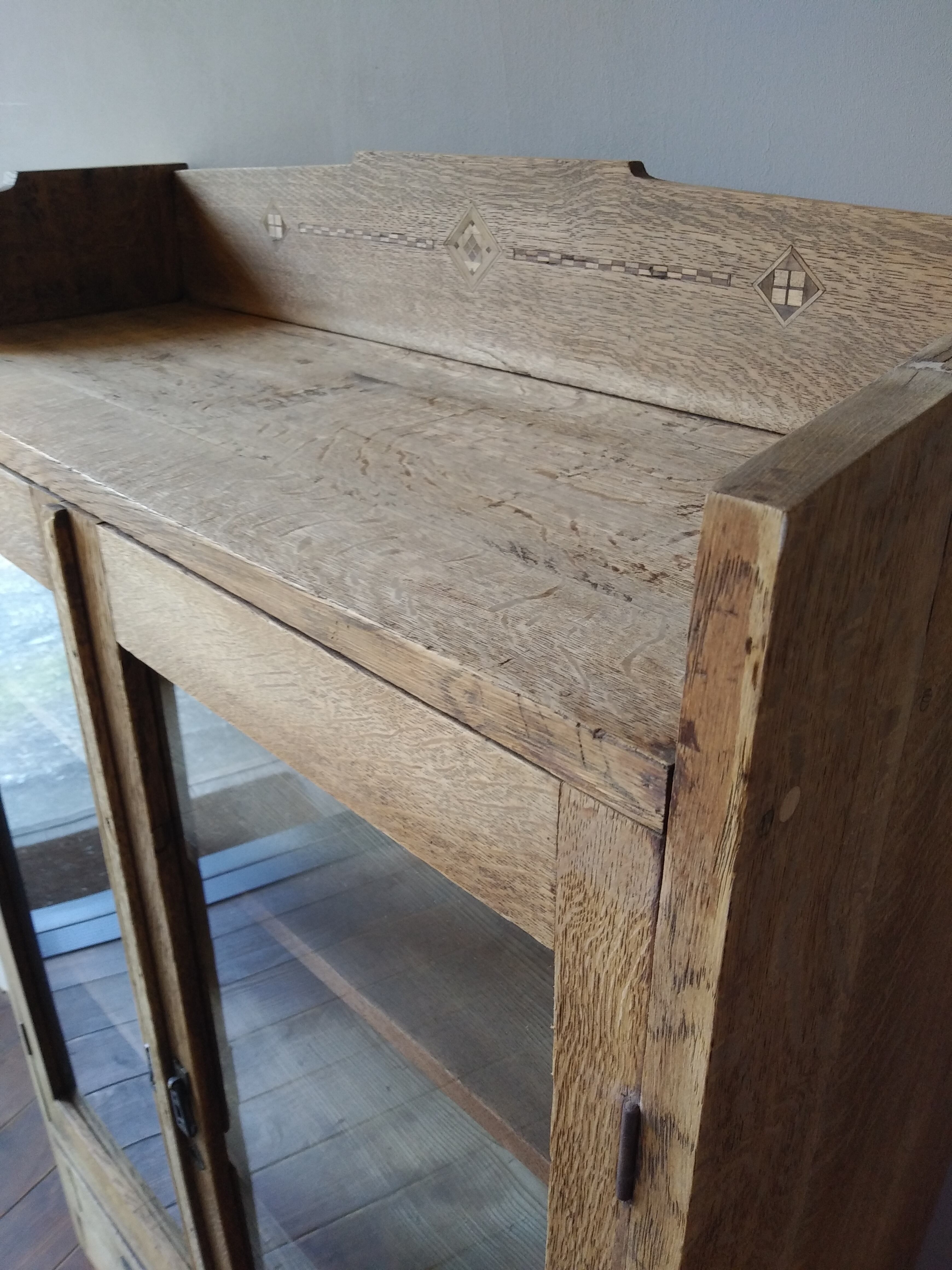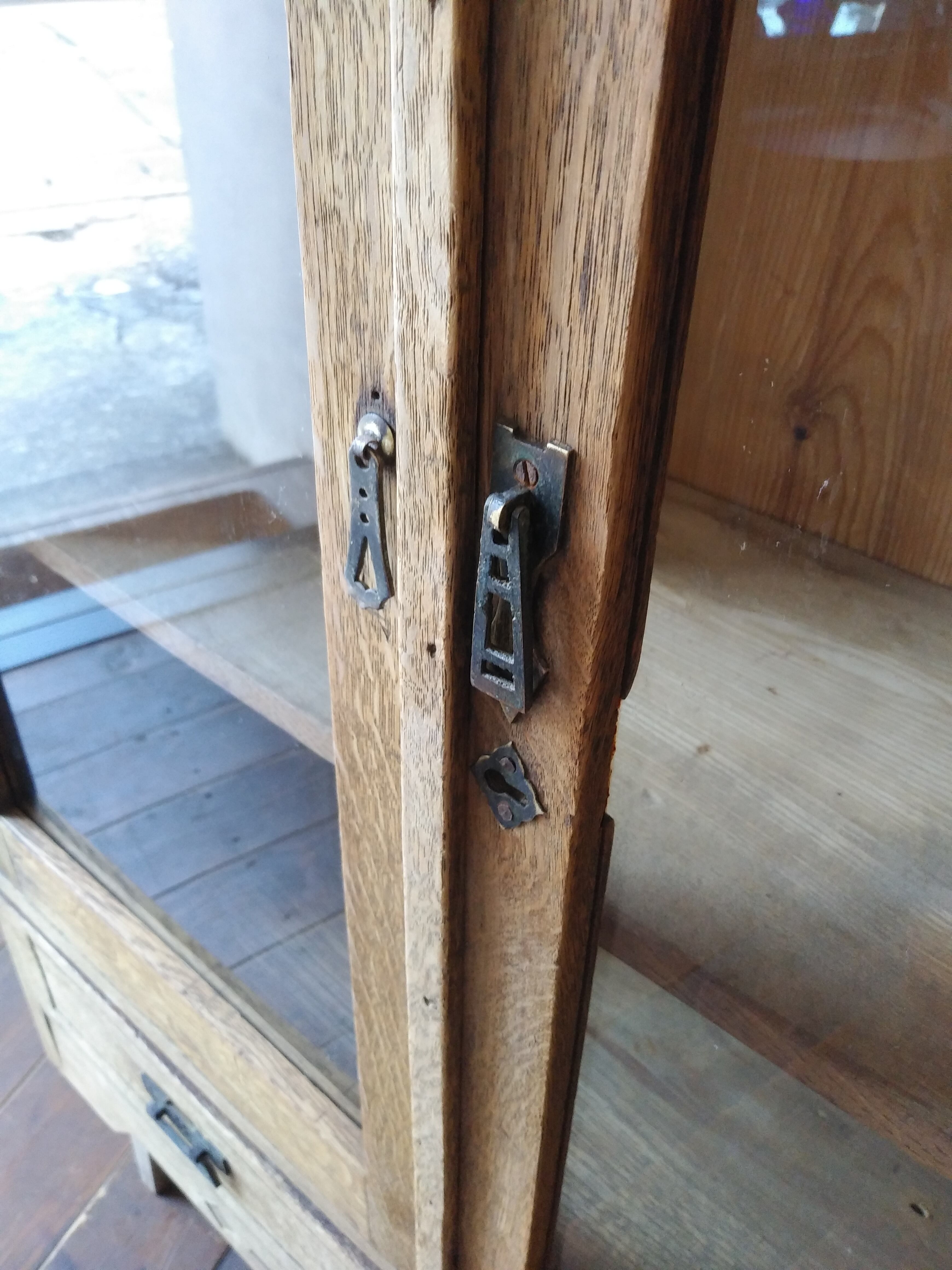 大正時代の古い主に楢材が使用された雰囲気の良いガラス戸棚です。