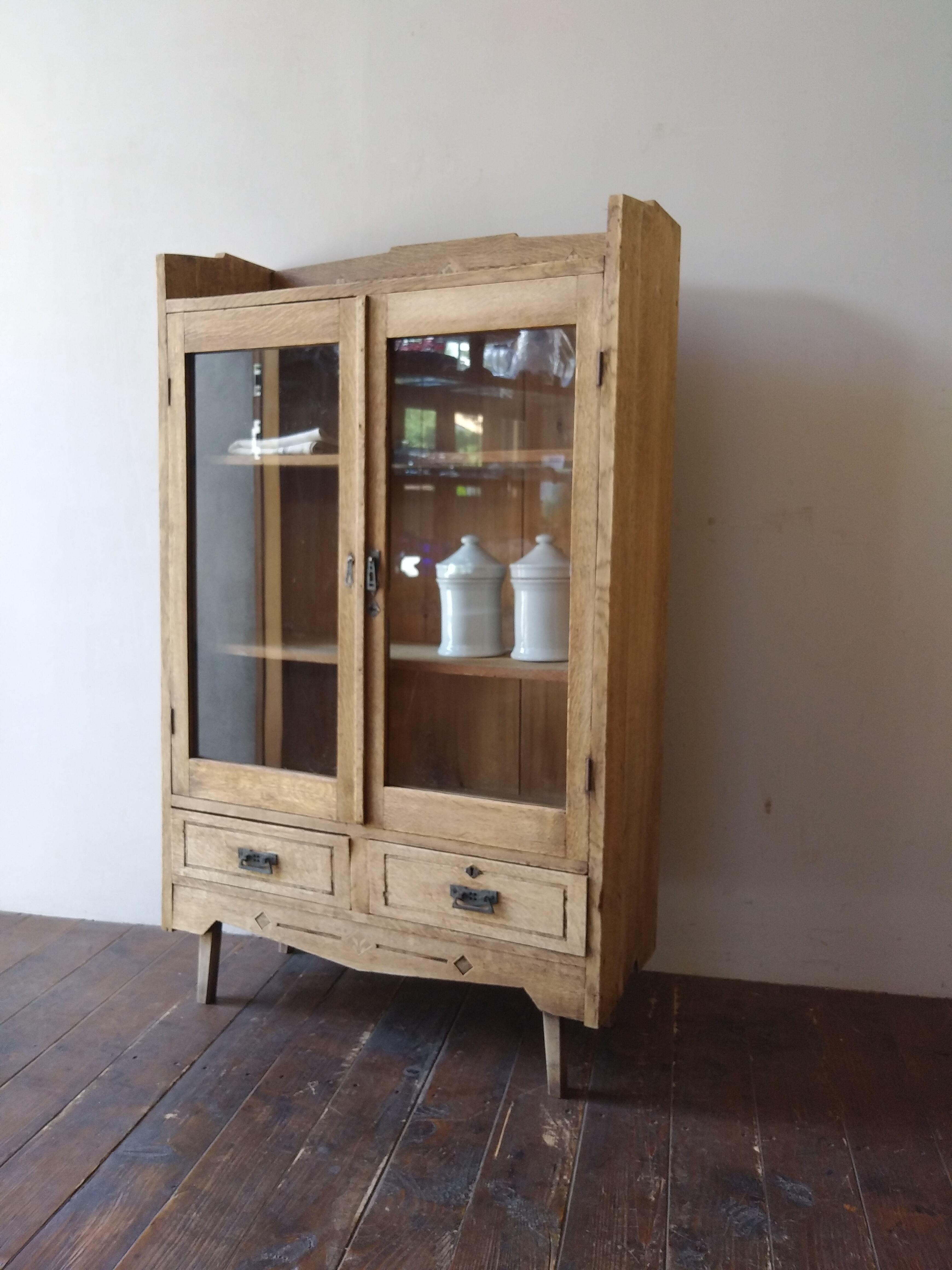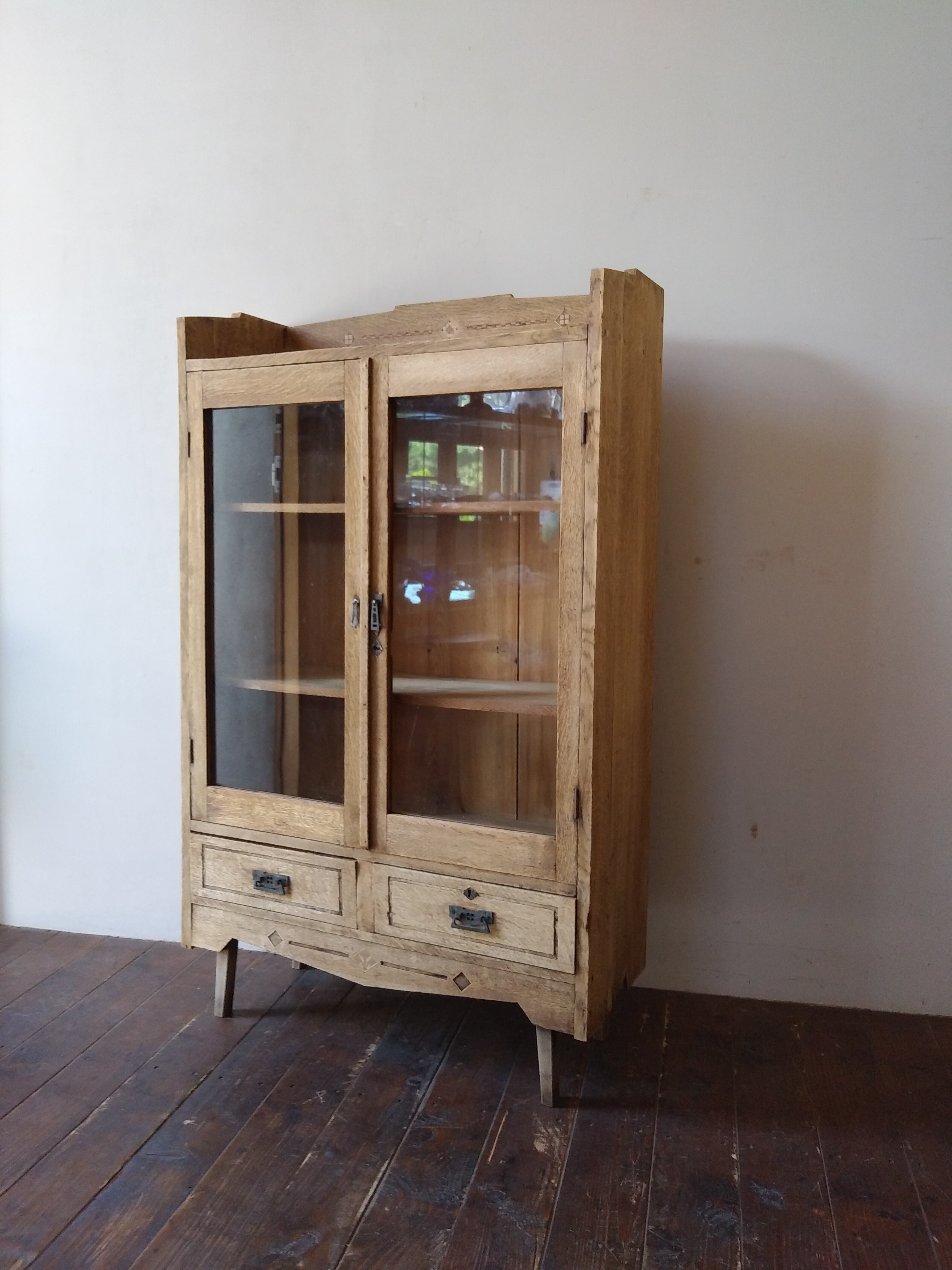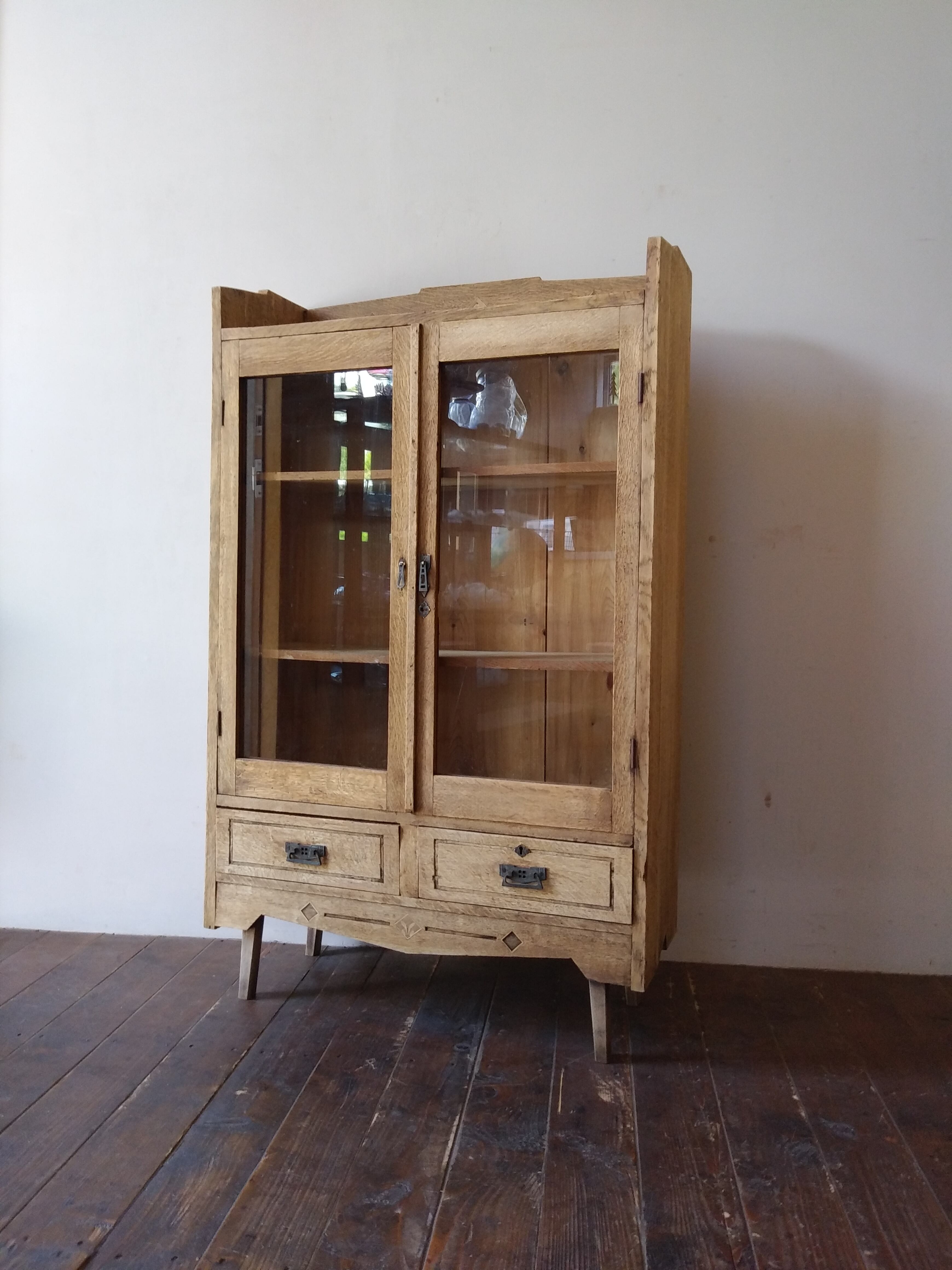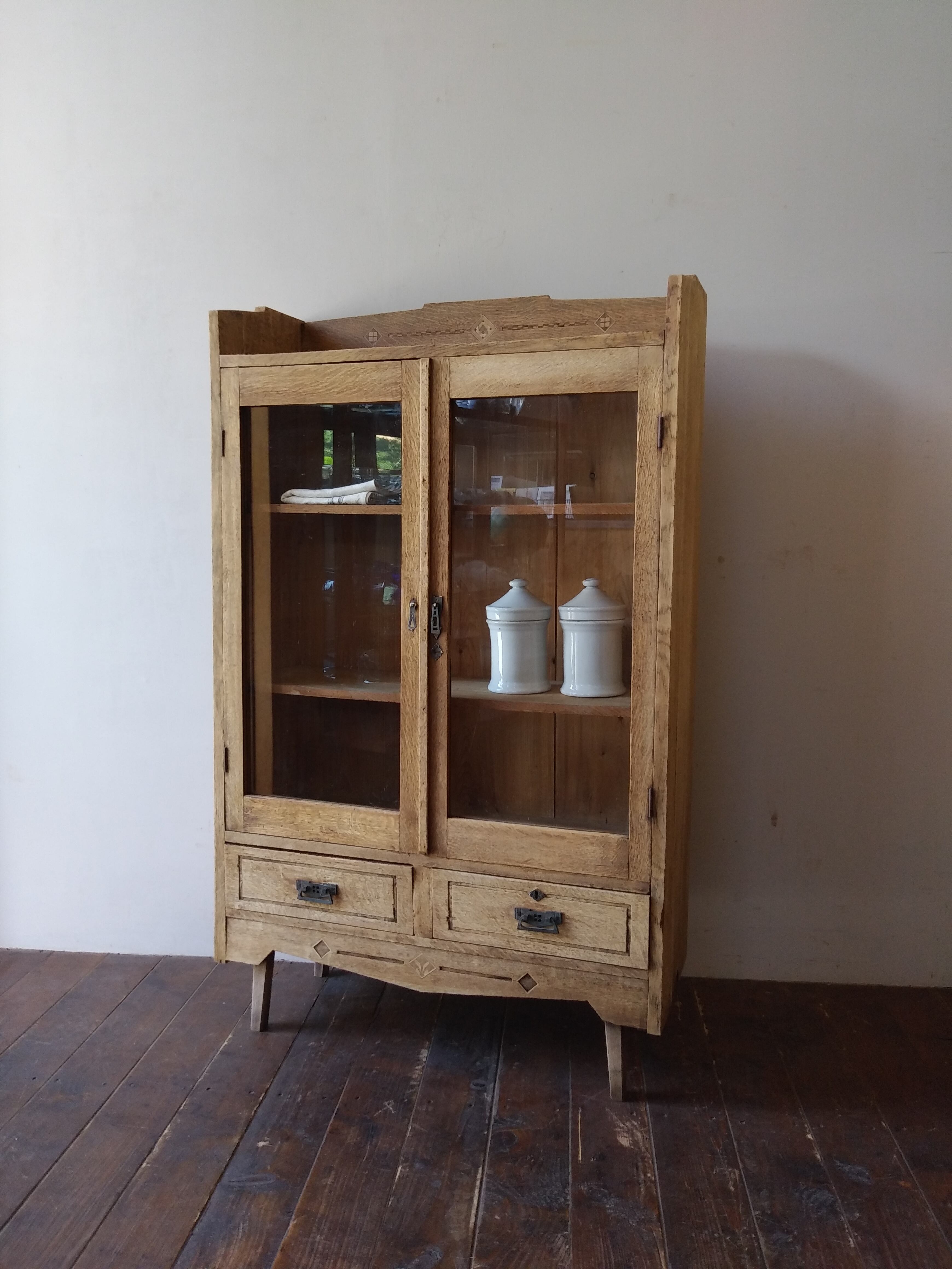 楢材の脚付ガラス戸棚