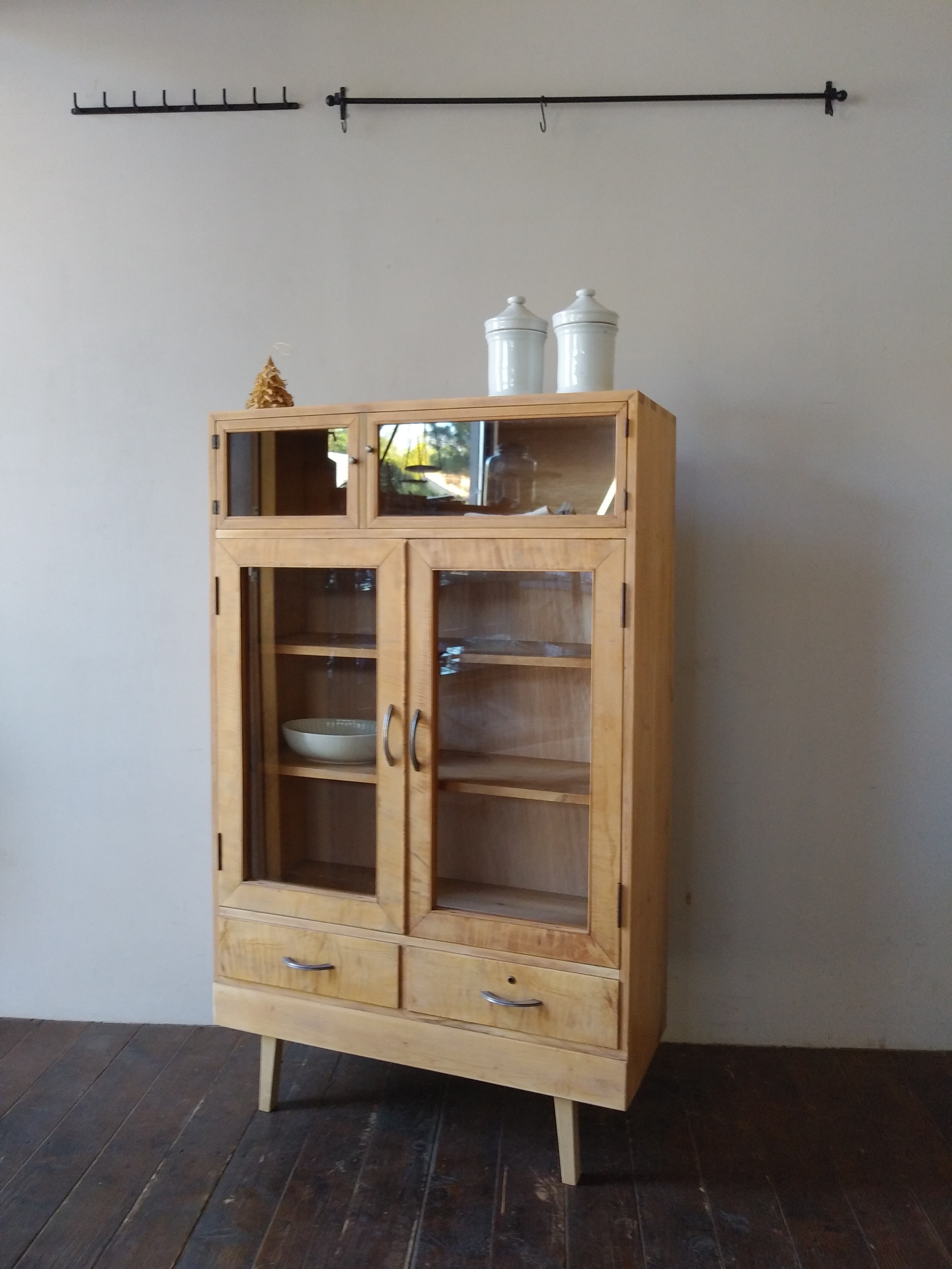 上部に小さな扉付なのでコレクションの物などの飾り棚や食器棚、店舗什器にもおすすめです